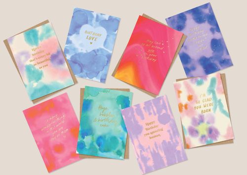 Soft, ethereal watercolours meet heartfelt gold foil sentiments in this dreamy range. Lumina offers a gentle burst of colour and emotion.