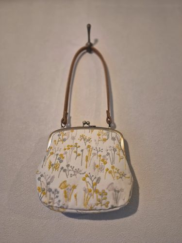 A classic kiss-lock bag handcrafted in Japan, paired with a natural leather handle for easy daily carrying. The outer fabric features an embroidered textile by ten to sen, expressing delicate botanica ...