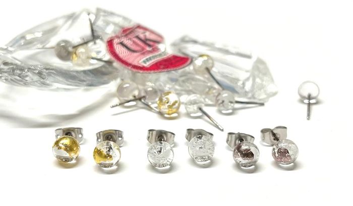 These studs are made with the glass melted directly onto surgical steel so no need to worry about them coming apart like glued ones.